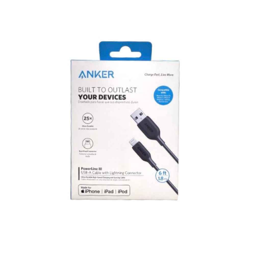 كابل أنكر باورلاين III بطول 1.8 متر هو الحل الأمثل لشحن ونقل البيانات بسرعة وأمان، يتميز بجودة عالية وتحمل فائق مع شهادة MFi من آبل.