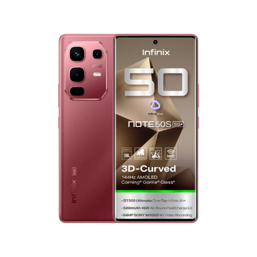 هاتف Infinix Note 50s 5G يتميز بأداء قوي، شاشة AMOLED كبيرة، كاميرا بدقة 64 ميجابكسل، بطارية طويلة العمر، وتصميم أنيق مقاوم للخدوش .