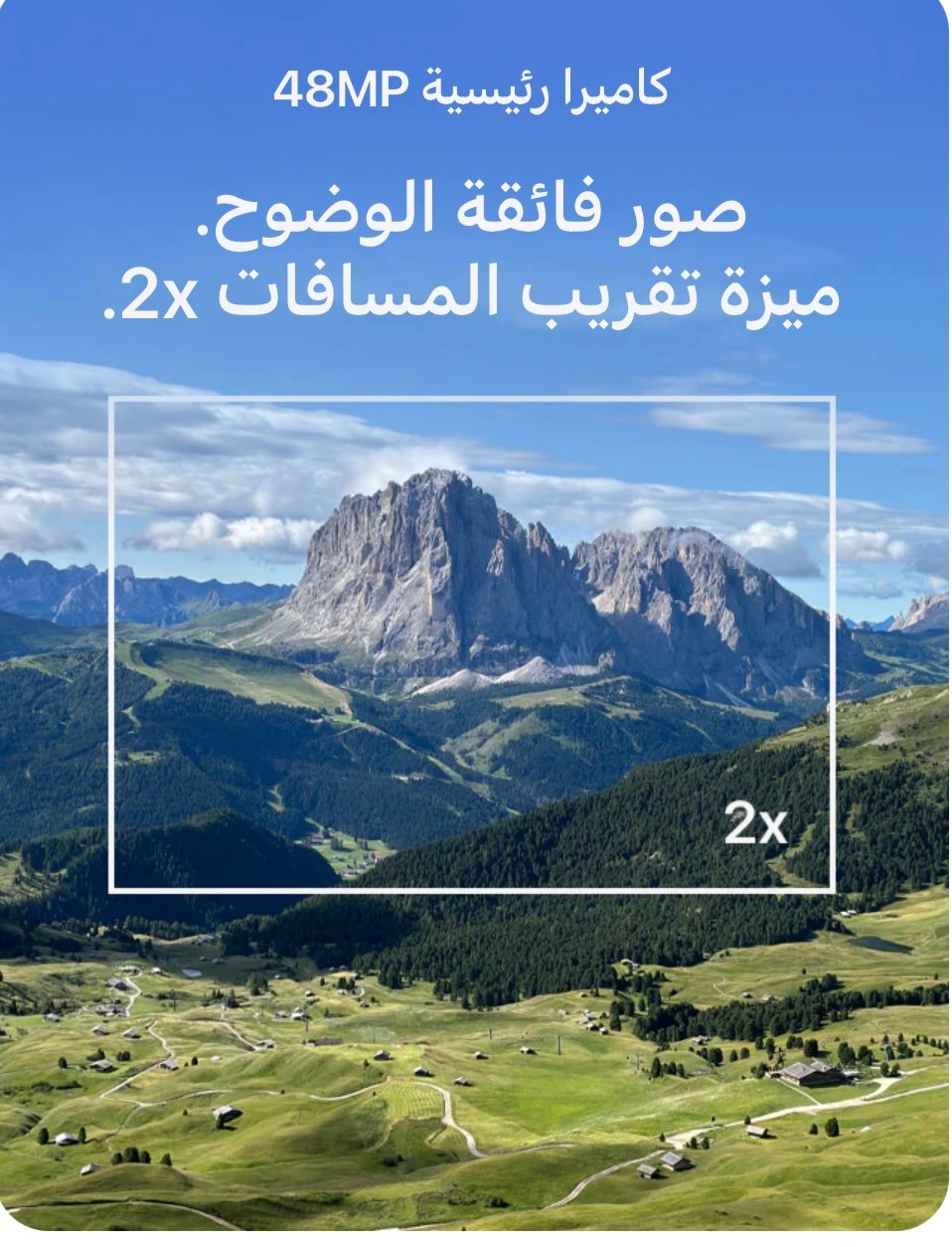 - الكاميرا الخلفية: مزدوجة 48MP + 12MP Ultra Wide