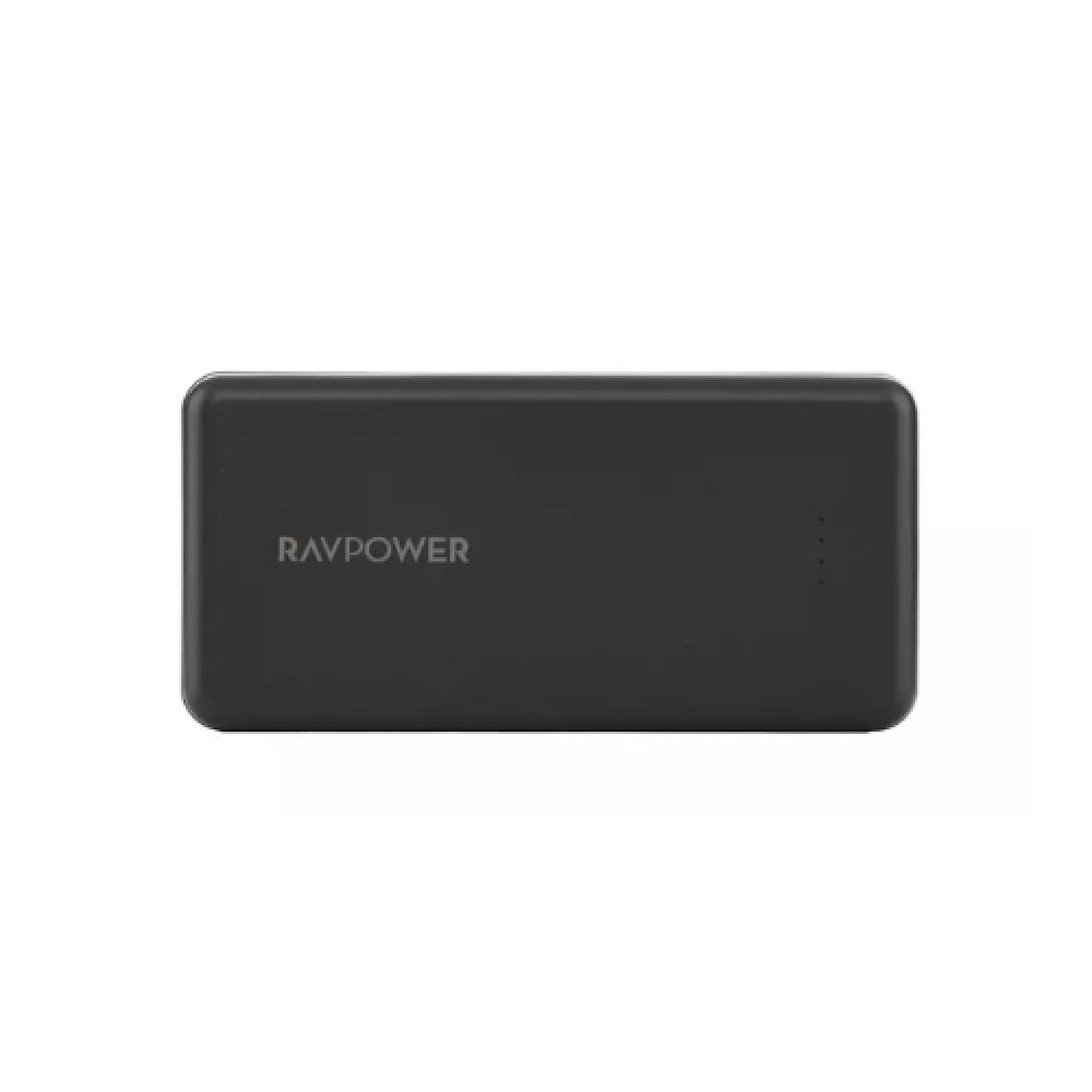 باور بانك من راف باور بسعة 20000mAh، مزود بثلاثة منافذ (USB-A x2 + USB-C + Micro USB للشحن)، يدعم الشحن السريع، مثالي للسفر والاستخدام اليومي .