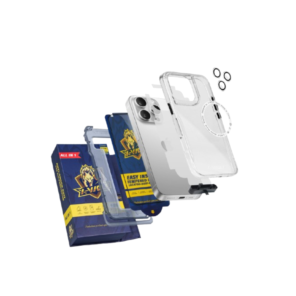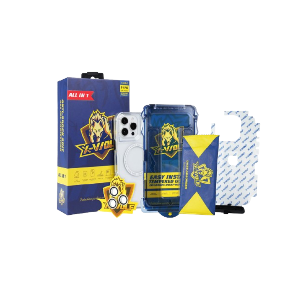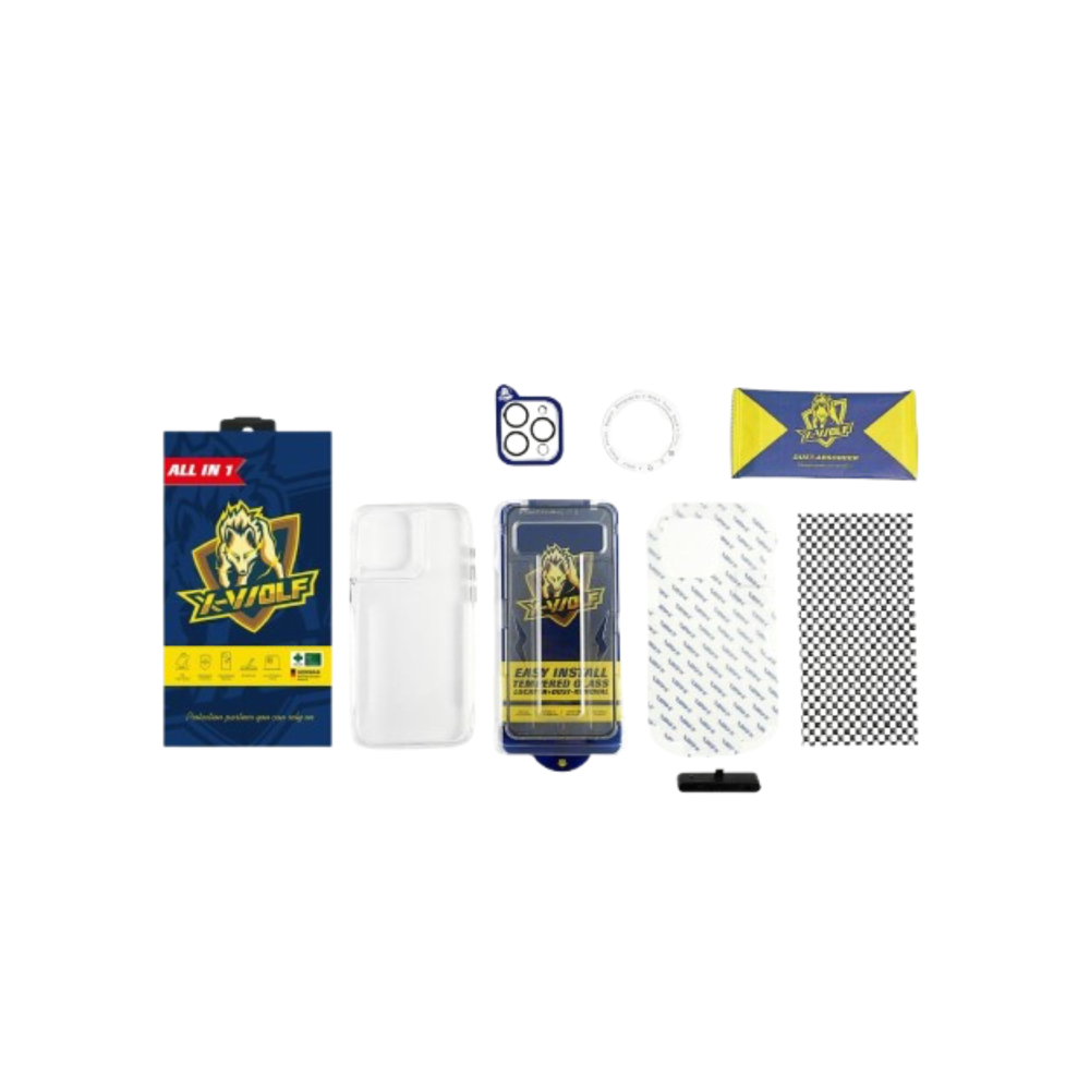 بكج حماية X-Wolf شامل يحتوي على كفر مقاوم للصدمات، حماية شاشة وزجاج حماية كاميرا، لتوفير حماية كاملة وعالية الجودة لجهاز الآيفون الخاص بك